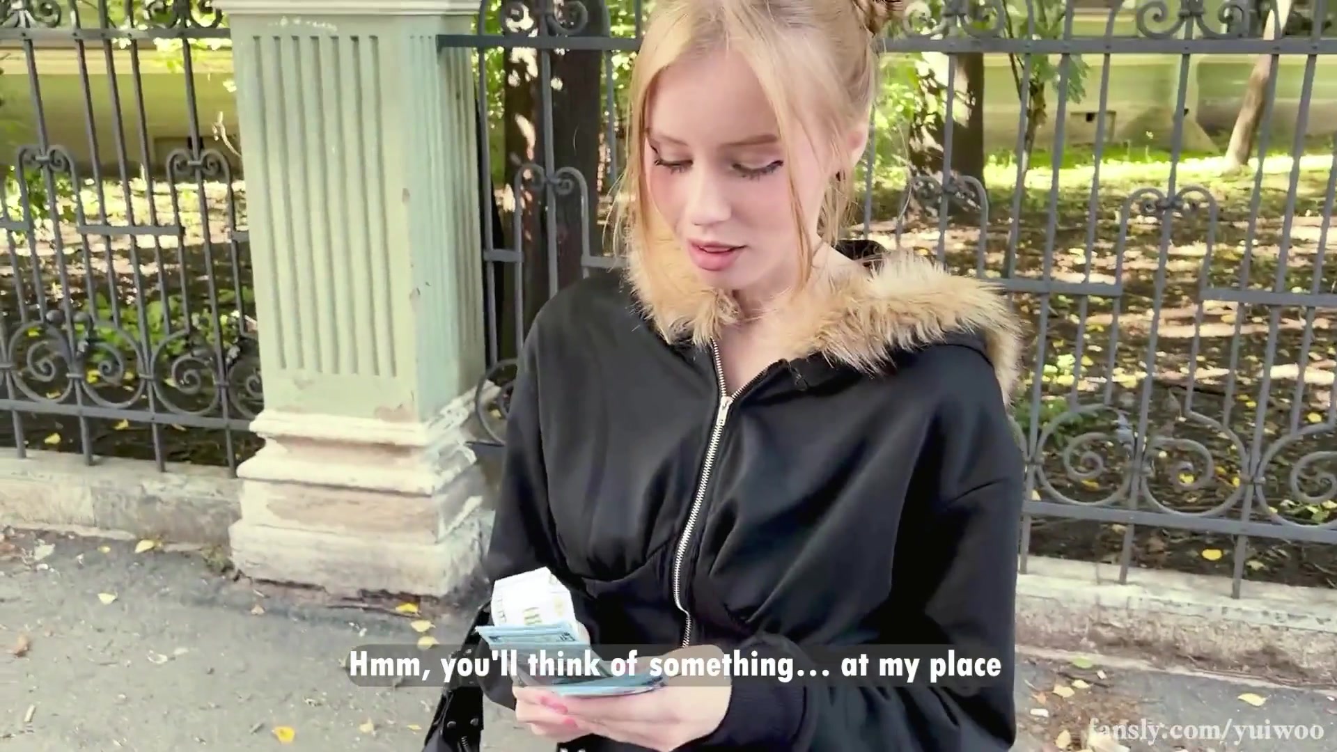 She is nervous, shy and naive as she walks into the hotel room to cheat on her boyfriend for $500 and his "big cock". She trembles as she undresses and falls to her knees sucking him deeply into her mouth - gagging, drooling and full of guilt in her eyes. He bends her over and slams into her tight pussy - stretching it further than before, and she begs him to "go harder." He continues pounding her without stop, until he has buried himself balls deep in her cheating vagina and ejaculated a thick, warm cumshot directly into her face.
