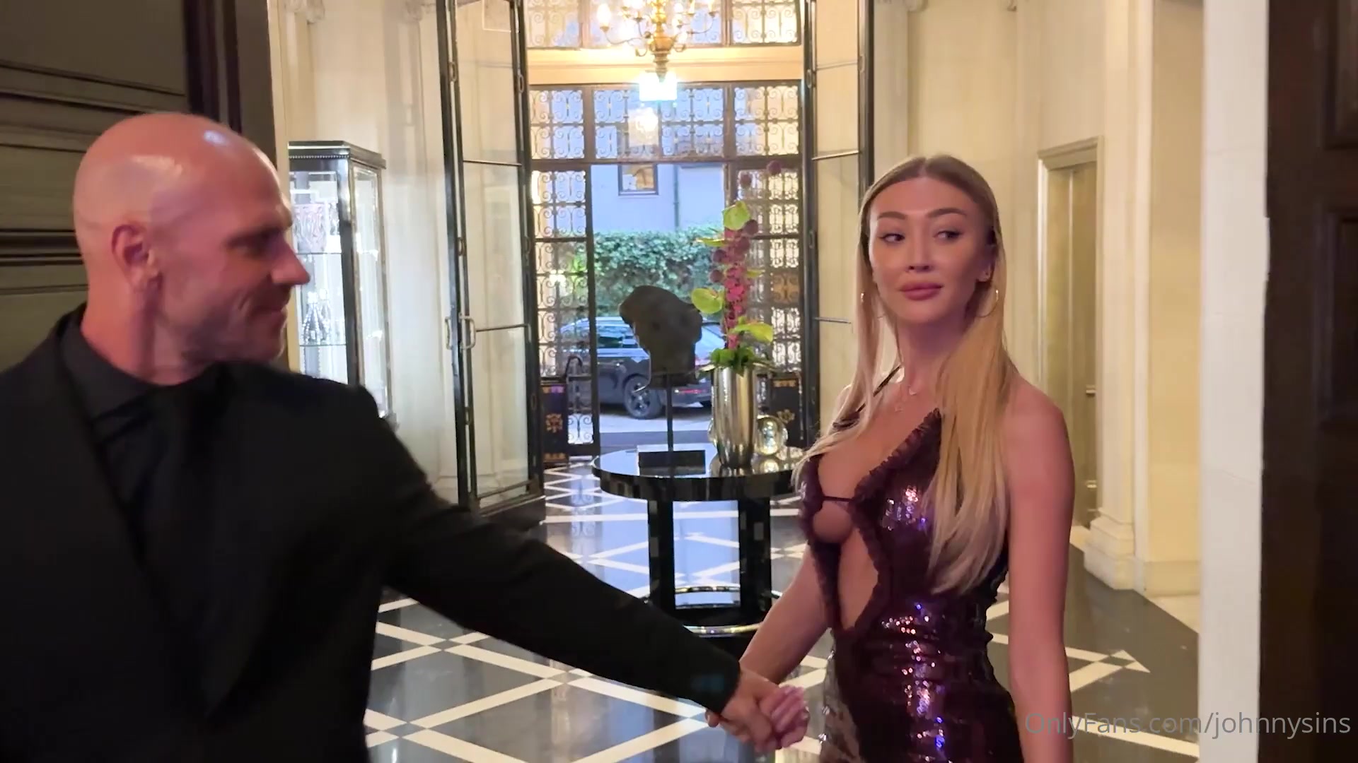 Frances Bentley is matched against adult movie legend Johnny Sins in an extremely intense hardcore sex scene. The scene begins as he thrusts his large cock into her vagina while she lies on her back in missionary position and also while she kneels over him in doggystyle, causing her to moan and scream. Once he has thoroughly pounded her vagina, he switches to her anus by having her lie on her back again (now in reverse cowgirl) and then by having her lie on her stomach (prone bone), where he thrusts his cock deeply into her anus with extreme force and power. Frances does not appear to be overwhelmed at all by his thrusting, and therefore continues to accept every inch of his cock, until he finally ejaculates onto her vagina.